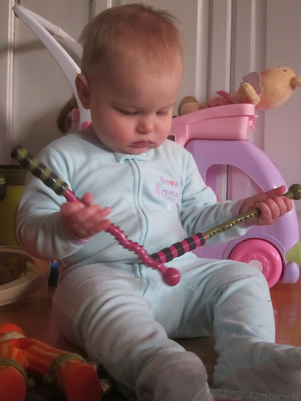 Bea was lucky enough to get a bunch of new toys for her birthday. Each one is a big deal to her. Lots of action and reaction. At the end of one afternoon, we wanted to get outside and wear "that fleece vest of Esme's that we've been saving". I don't think it was supposed to be a pit digger.