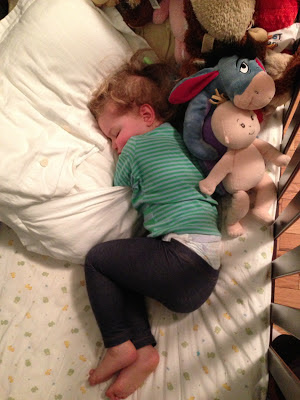 Bea likes to tuck her hands and arms into things when sleeping. This time it was the back of the pillow.