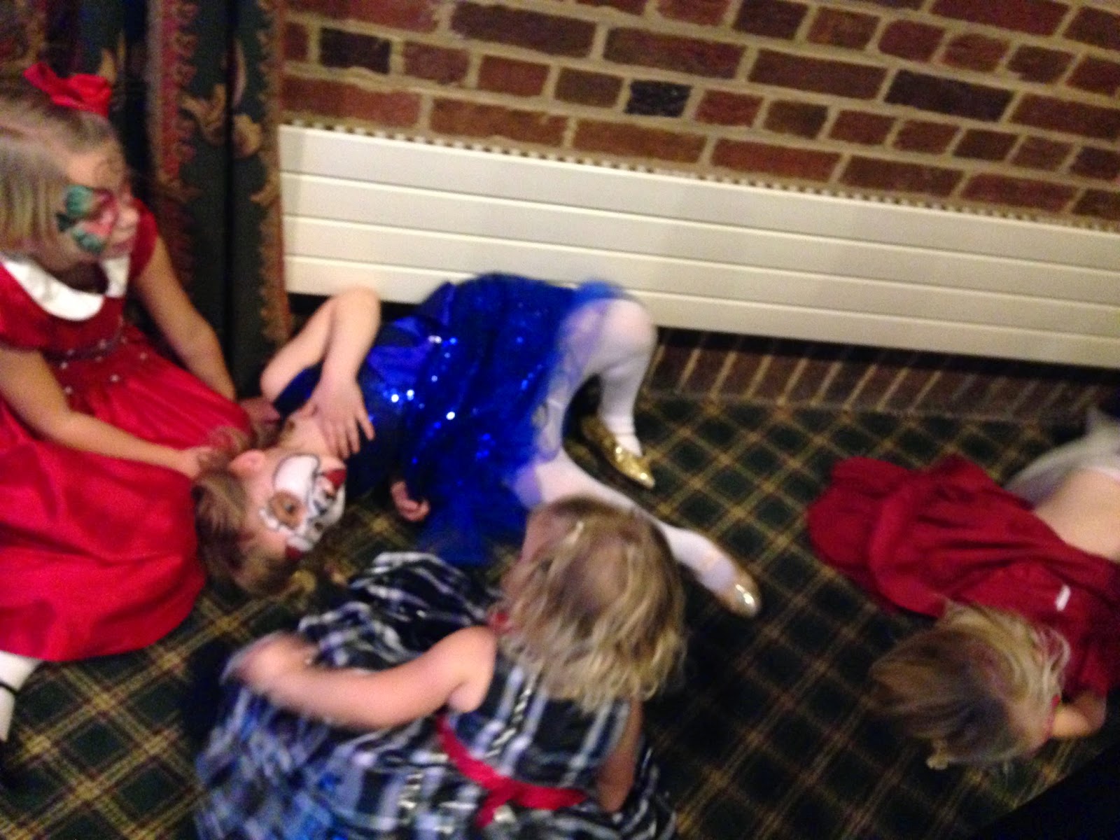 The Medinah Christmas party is always such a treat. This year didn't disappoint. After shoving our faces with shrimp and peppermint mousse, the girls made elf hats! Cordelia went for the jumbo pom poms, which in turn made her hat VERY heavy.